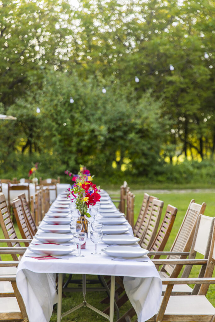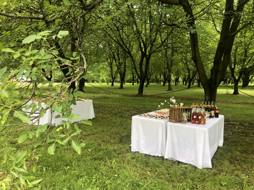 - Déjeuners chic et champêtre 100 % produits locaux sous les noyers